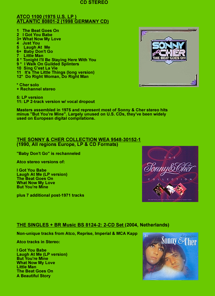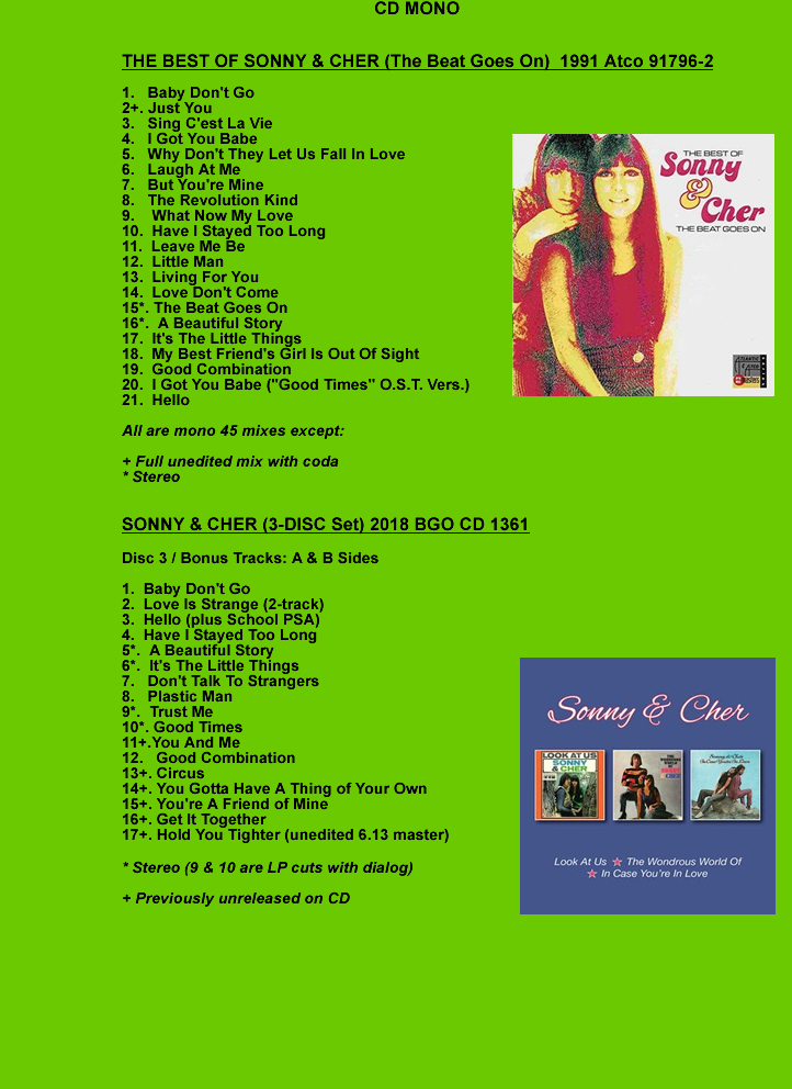 "THE BEST OF SONNY & CHER" LP does not use single versions on the following tracks: